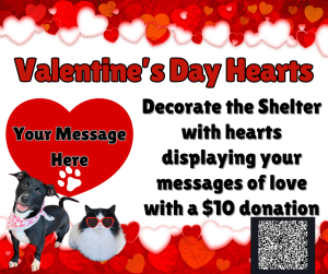 Dedicate a heart to a special person or pet and see it displayed in our lobby—spreading love while supporting our shelter pets.