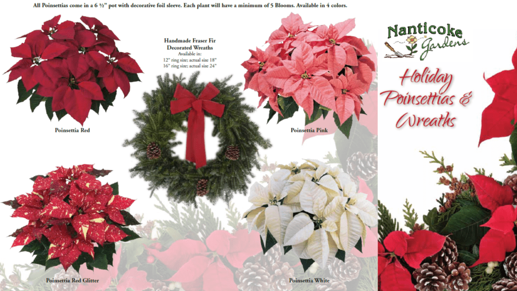 - Poinsettia Plants (varieties include red, white, pink, & red glitter)